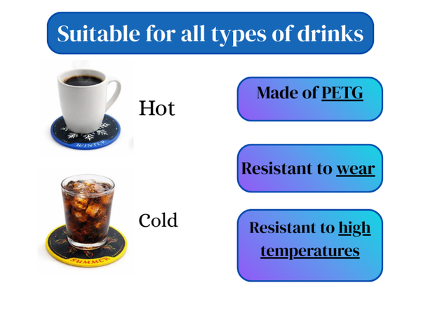【Material de calidad】 : Posavasos fabricados en PETG de alta calidad. Resistentes y duraderos a los roces y aptos para soportar altas temperaturas.