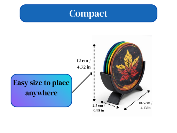 【Formato práctico】: Se suministran en un juego práctico de 4 posavasos y un soporte elegante para guardarlos.